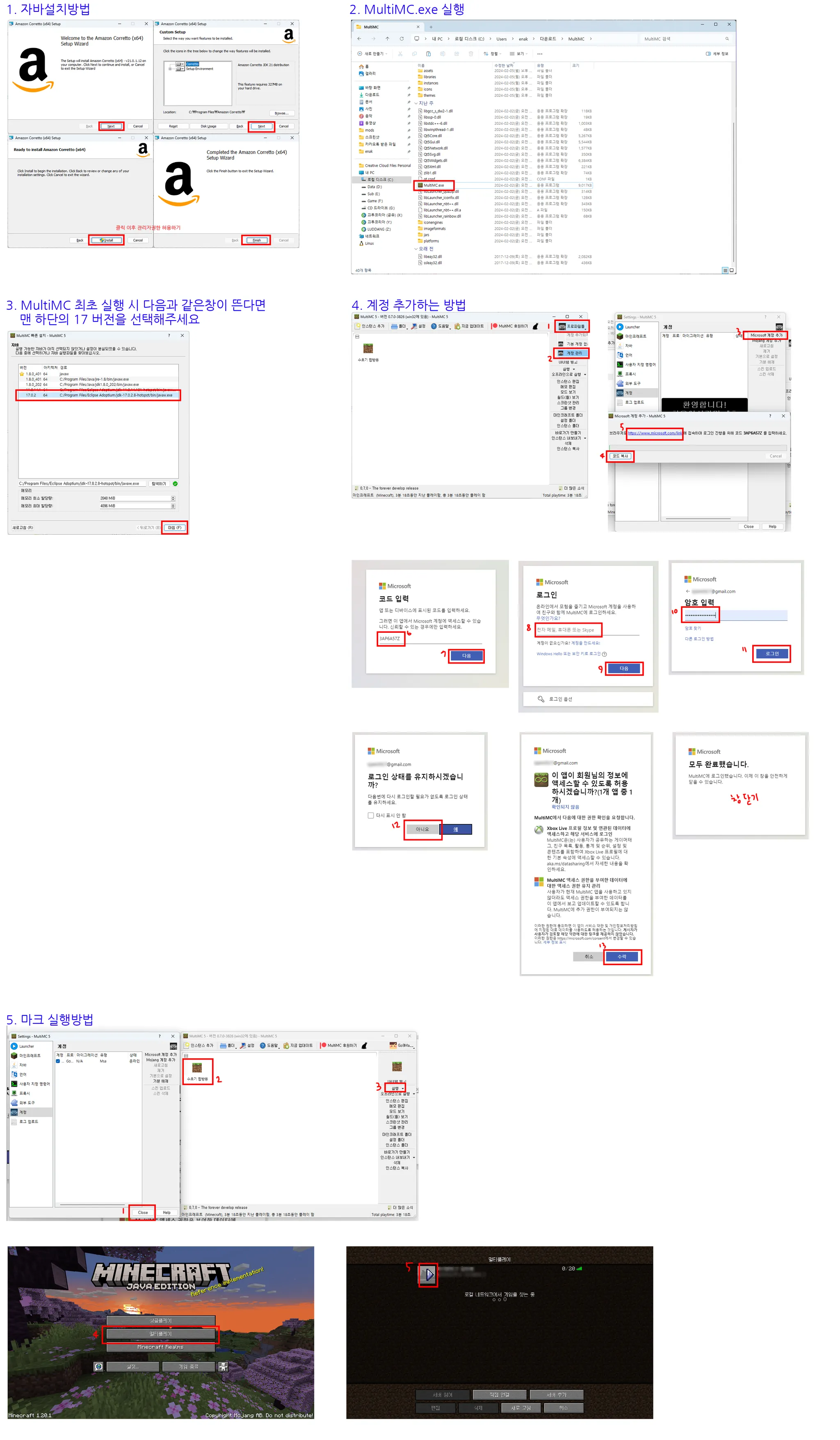 이후 다시 MultiMC 로 돌아와서 "Close" 버튼을 눌러 계정 관리 창을 닫아준 후, “별조각 게임" 라고 적혀있는 아이콘을 누른 후에 "실행" 버튼을 눌러줍니다.