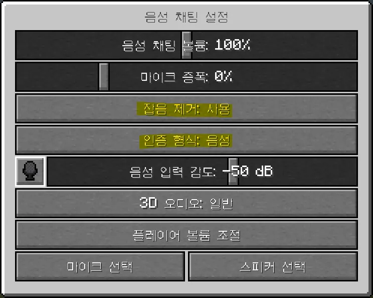 마인크래프트 화면 왼쪽 하단에서 마이크 뮤트 상태를 확인할 수 있습니다.