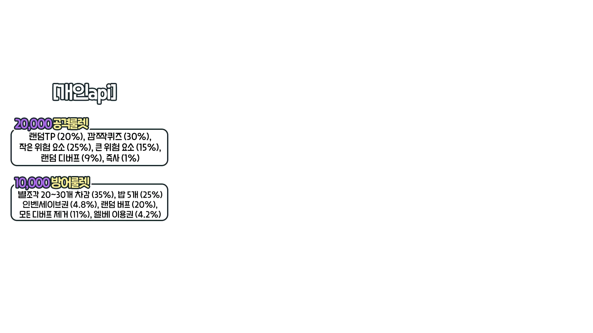 개인 방어api와 섭주 골든벨api에 대한 확률 조정이 진행되었습니다.